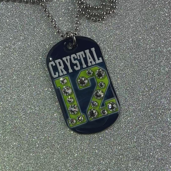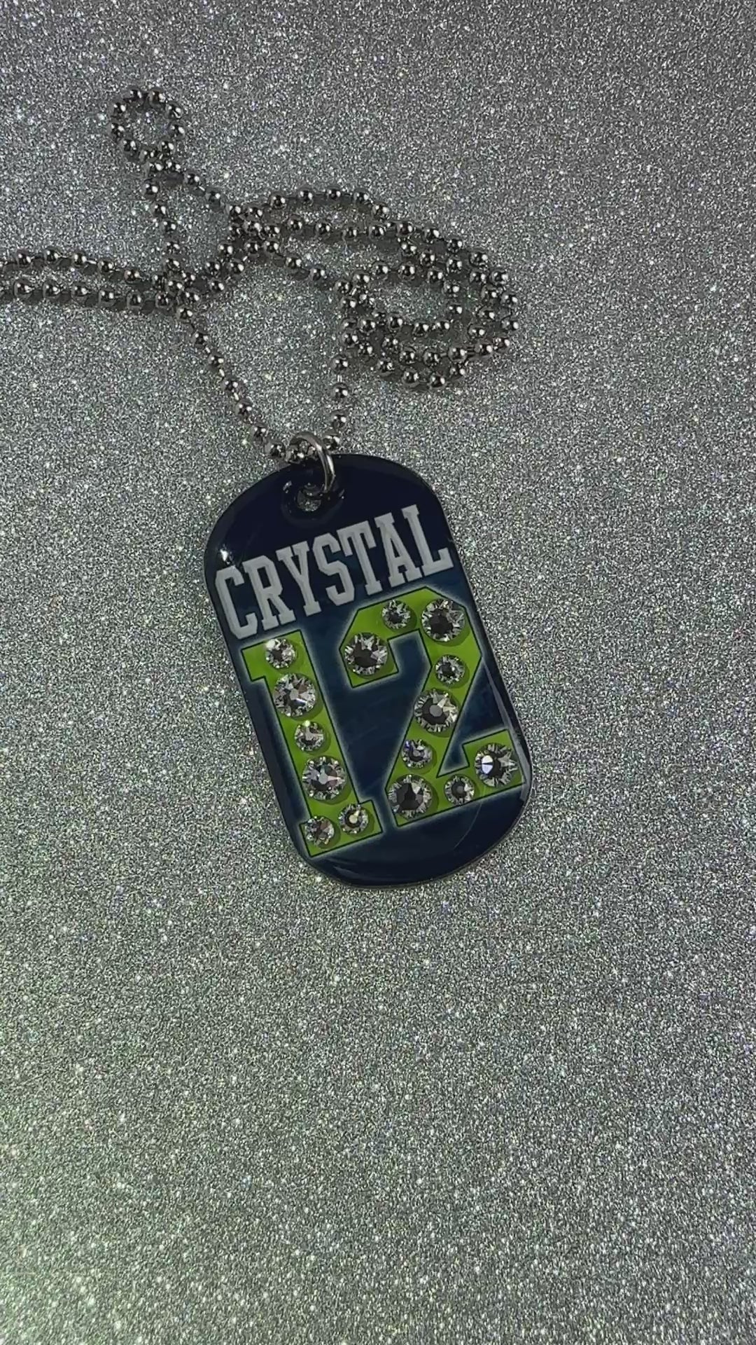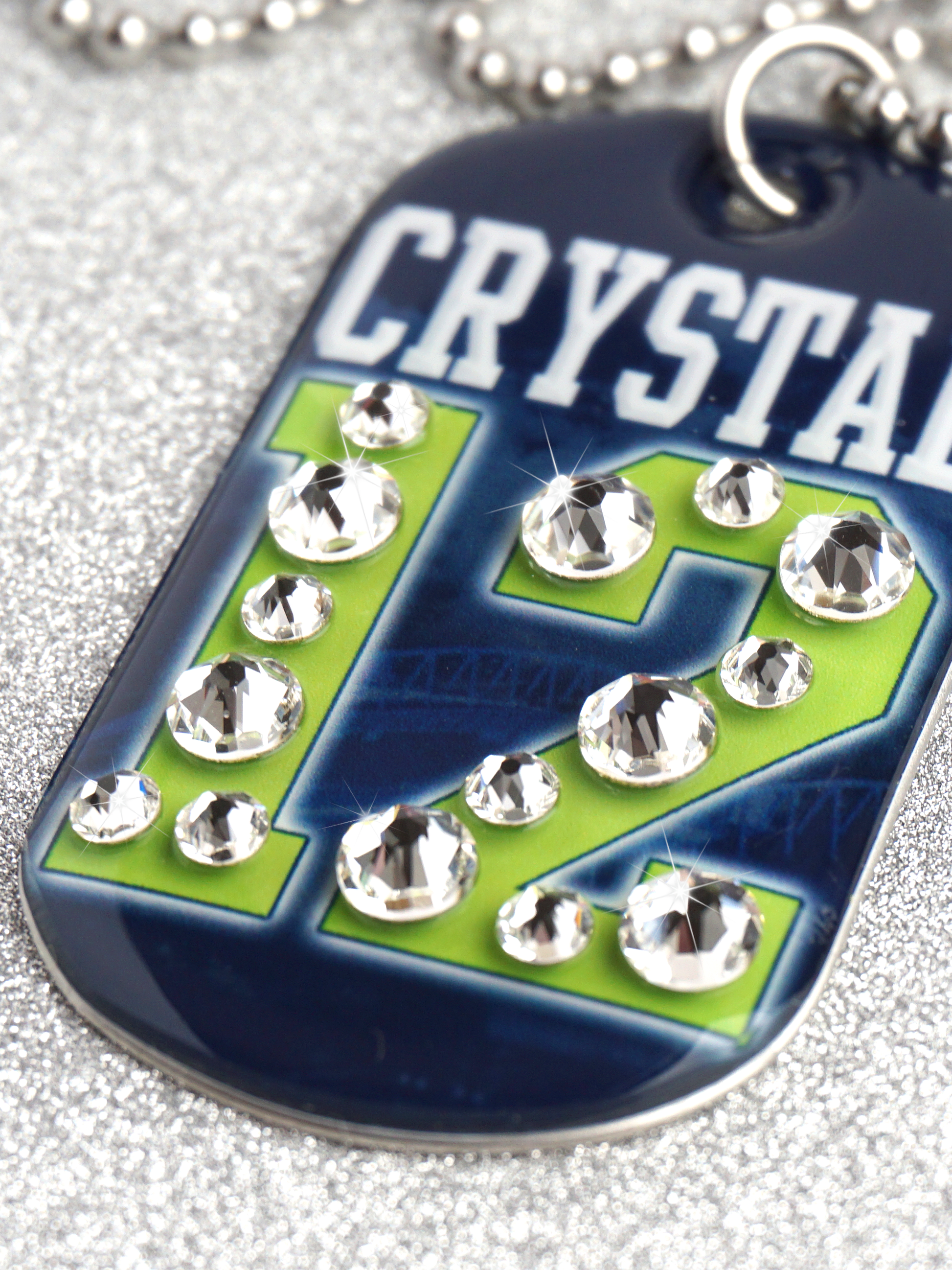 Single-Sided Custom Fan Tag Necklace Blinged out with Swarovski Crystals .